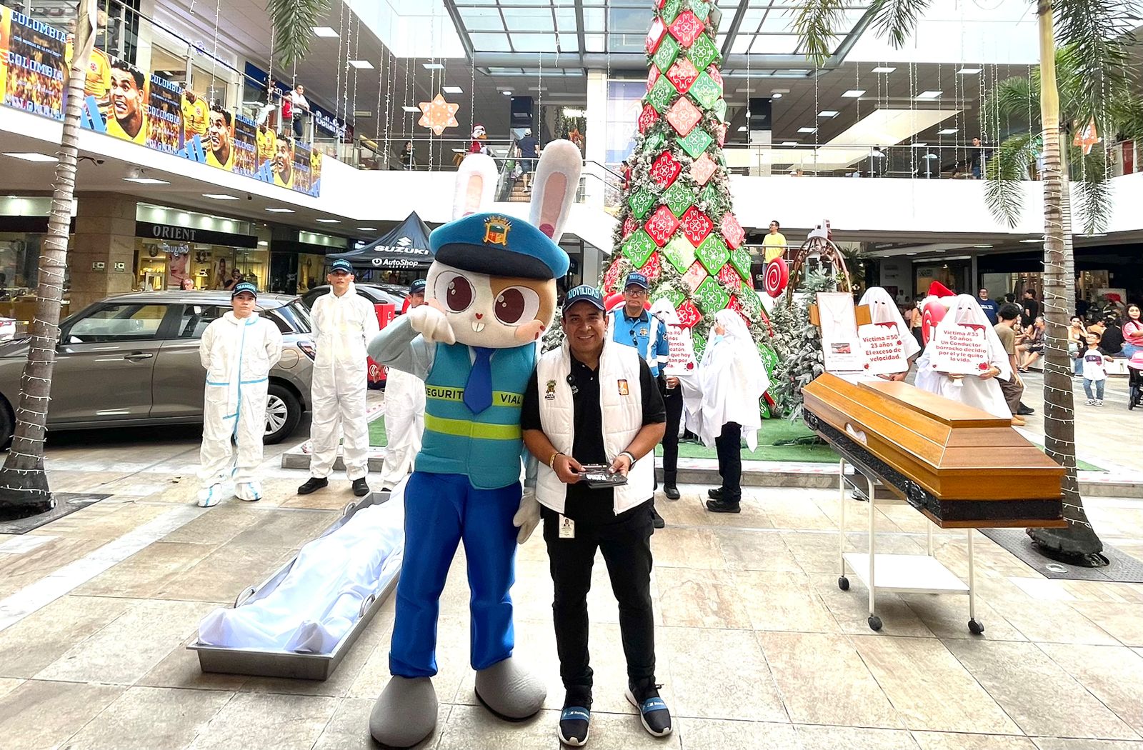 En esta oportunidad y con la simulación de escena de fallecimiento, la representación simbólica busca generar reflexión e impacto en los ciudadanos frente a las consecuencias de la imprudencia y el incumplimiento de las normas viales.