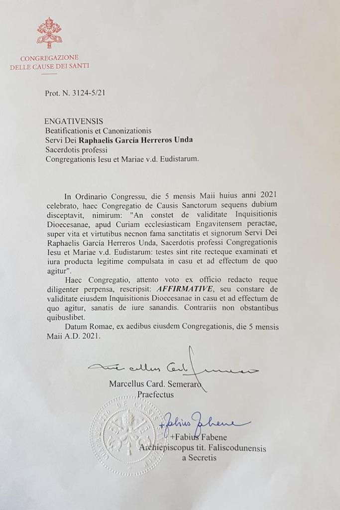 - Fase Diocesana (2013-2018): Durante esta etapa, el tribunal eclesiástico de la Diócesis de Engativá recogió todas las pruebas necesarias sobre la vida, virtudes y fama de santidad del Siervo de Dios, incluyendo testimonios de quienes lo conocieron y todos sus escritos.