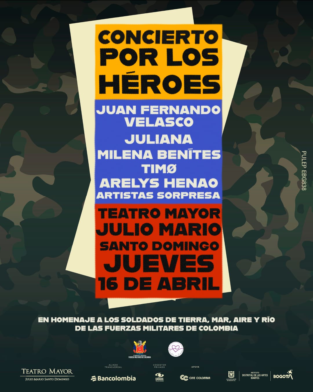 El Concierto por los Héroes 2026 es uno de los eventos solidarios y culturales más emblemáticos de Colombia, creado para rendir un homenaje profundo y sincero a los Soldados de Tierra, Mar, Aire y Río de las Fuerzas Militares de Colombia, hombres y mujeres que entregan su vida al servicio de la nación.