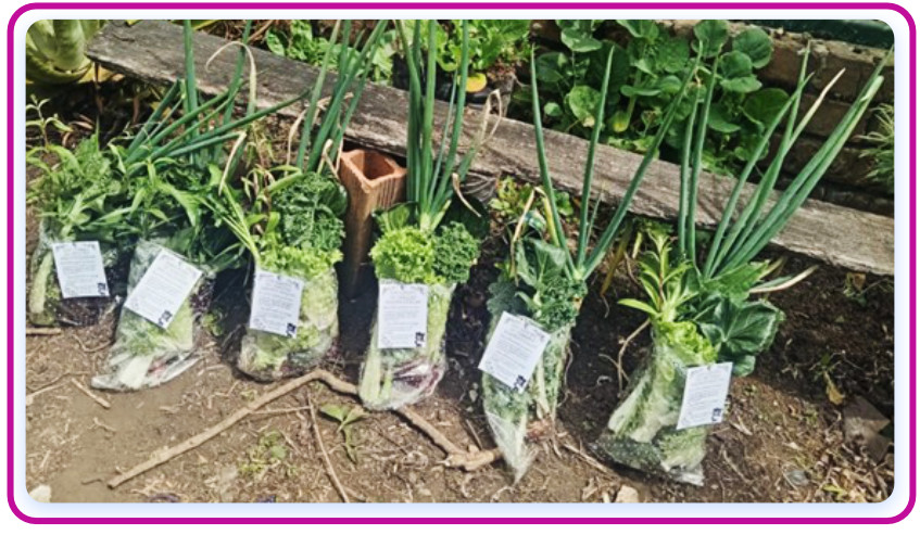 En la actualidad se hizo la recolección de hortalizas como lechuga, espinaca, brócoli, también plantas aromáticas y otros cultivos que fueron entregados a las familias de nuestra institución en bolsas de ensaladas, con el propósito de que los productos cultivados en nuestra huerta lleguen a sus mesas y puedan ser disfrutados en sus hogares.
