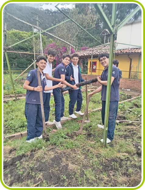 El espacio de la huerta ha estado presente en la historia de nuestra institución, es el lugar donde podemos interactuar con los recursos naturales que nos ofrece los ecosistemas de la sabana de Bogotá. Desde los más pequeños hasta los más grandes disfrutan de la huerta, porque no es solamente su biodiversidad o los cultivos orgánicos que se siembran allí, sino también fomenta la colaboración entre todos los estudiantes, profesores, familias y personal administrativo quienes sienten este espacio como una forma de relacionarse con nuestras raíces y el proceso de obtención de alimentos.