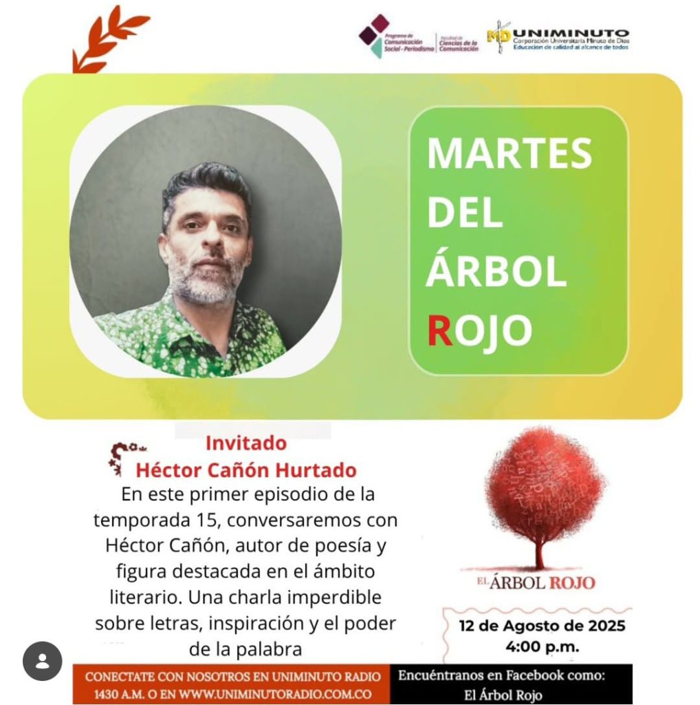 En el inicio de la temporada número quince de El Árbol Rojo, la profesora Natalia Montejo dio la bienvenida a un invitado muy especial: el poeta, narrador y periodista Héctor Cañón, ganador del Premio Internacional de Poesía Paralelo Cero (2018) y reconocido por su compromiso con la palabra y la reflexión sobre la violencia en Colombia.