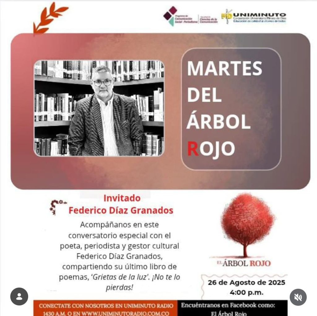 En una tarde serena, El Árbol Rojo volvió a abrir sus ramas para recibir a uno de sus amigos más queridos: Federico Díaz Granados, poeta, periodista y gestor cultural colombiano, quien conversó con Natalia Montejo sobre su más reciente libro Grietas de la luz (Fondo de Cultura Económica, 2024). La entrevista, cálida y hondamente humana, fue un viaje por la memoria, la pérdida y la persistencia del lenguaje como refugio frente al olvido.