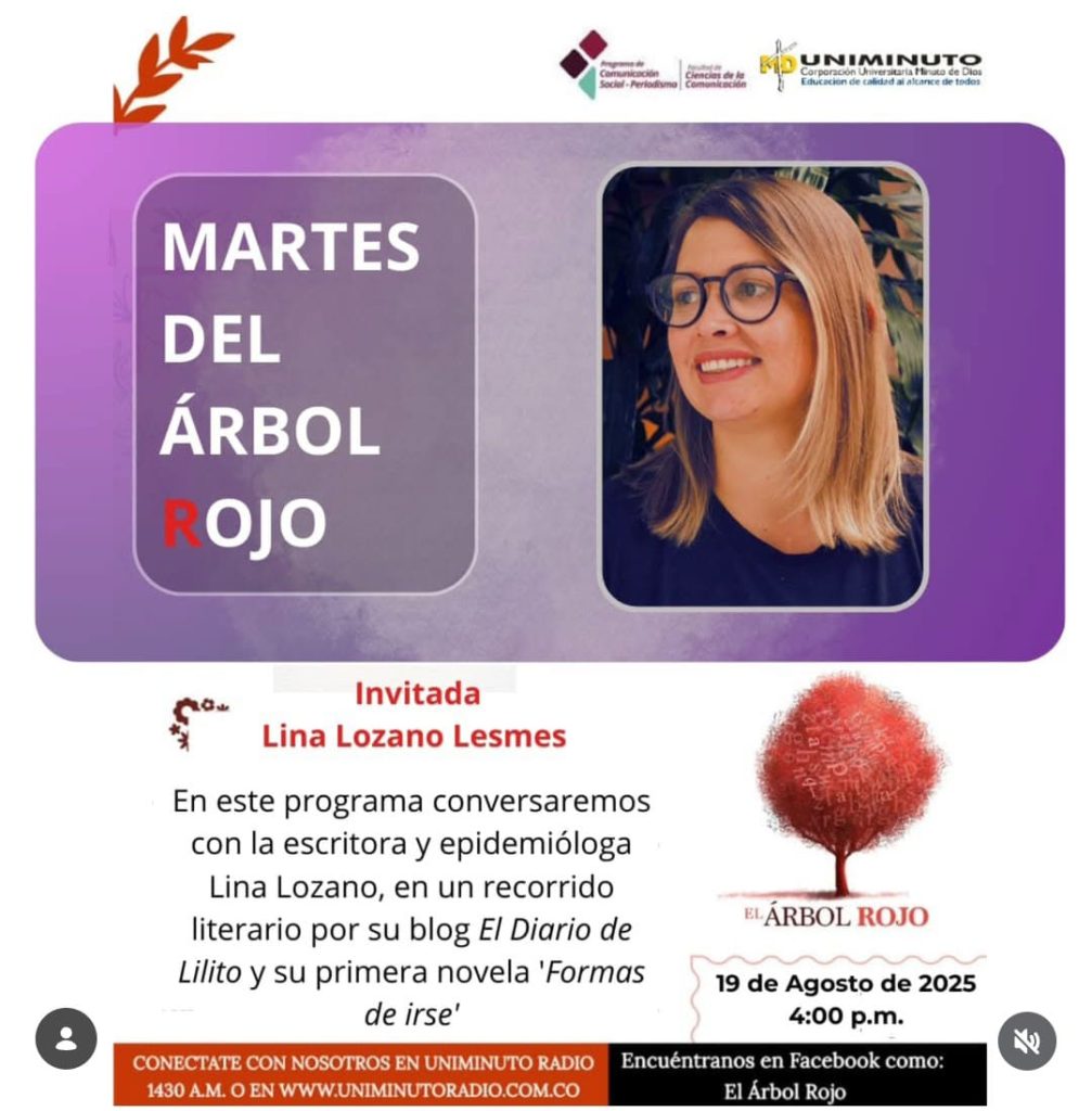 En el programa El Árbol Rojo, dirigido por Natalia Montejo, la conversación floreció entre los matices de la literatura y la vida. La invitada fue Lina Lozano Lesmes, escritora, enfermera y epidemióloga que ha tejido un puente entre el rigor científico y la sensibilidad literaria. Su primera novela, Formas de irse, publicada por Club Editores, fue el centro de un diálogo que respiró humanidad, oficio y memoria.
