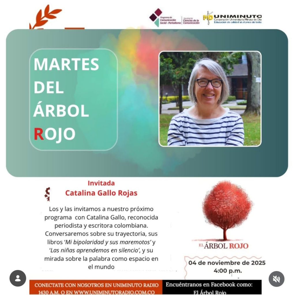 En esta emisión de El Árbol Rojo, el encuentro se sintió desde el primer instante como una conversación cálida entre mujeres que se reconocen en la palabra. La invitada fue Catalina Gallo Rojas, periodista, escritora y editora colombiana con una trayectoria amplia y profunda, cuyo trabajo transita entre el periodismo, la literatura íntima y la reflexión honesta sobre la salud mental.