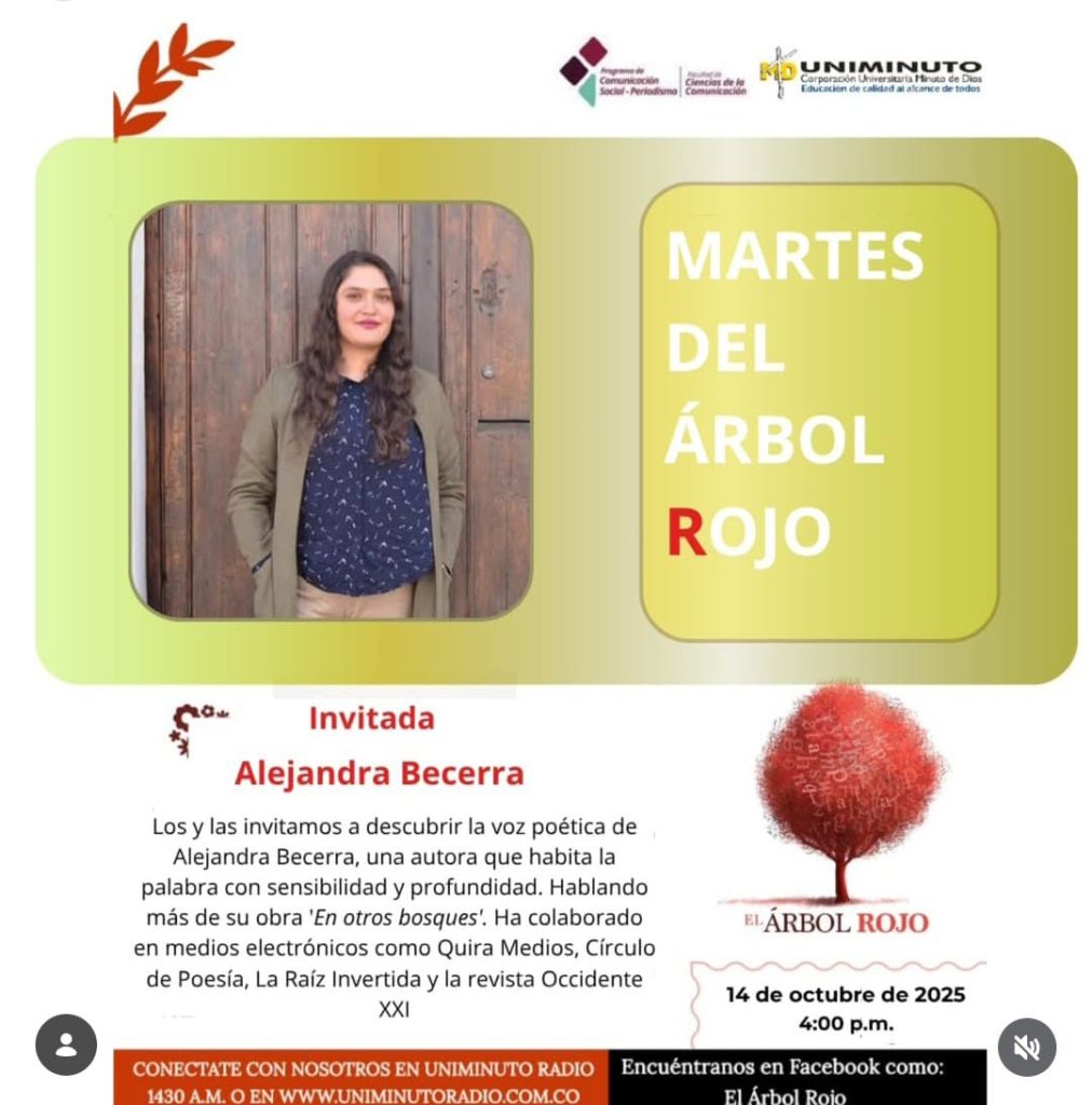El programa del 14 de octubre de El Árbol Rojo tuvo una energía especial: esa mezcla de calidez, conversación sincera y poesía que caracteriza a este espacio cada martes. Desde el inicio, la transmisión se sintió como una tarde luminosa que abría paso a una conversación profunda y muy humana con la invitada del día, la poeta bogotana Alejandra Becerra, autora del libro En otros bosques.