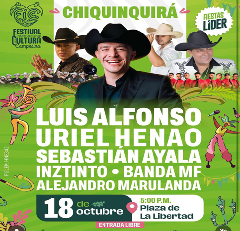 El pasado sábado 18 de octubre, la Plaza de la Libertad de Chiquinquirá fue el escenario de una noche llena de música, alegría y orgullo campesino. En el marco del Festival Internacional de la Cultura Campesina (FICC), que este año celebra sus 52 años de historia, el evento reunió a miles de personas que disfrutaron de un cartel de artistas de primer nivel, destacando la presentación de Alejandro Marulanda, Banda MF, Banda Inztinto, Sebastián Ayala, Uriel Henao y el gran cierre a cargo del Señorazo, Luis Alfonso.
