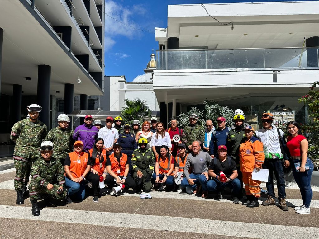 Durante el ejercicio, cada brigadista cumplió su función en los distintos pisos, con el apoyo de organismos de socorro y entidades que acompañaron el simulacro, entre ellos el Ejército Nacional, la Policía Nacional, la Defensa Civil, la Cruz Roja, los Bomberos Oficiales y Voluntarios, así como el grupo Scout de Emergencia, quienes orientaron el desplazamiento seguro de los participantes y evaluaron el desarrollo de la actividad.