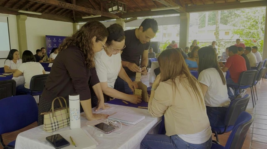 El momento central estuvo marcado por una actividad colaborativa: seis mesas de trabajo recibieron planos y piezas para construir estructuras distintas. Al unirlas, se ensambló la réplica de la primera instalación de UNIMINUTO, una metáfora poderosa que recordó que el crecimiento institucional es fruto de la unión de talentos y esfuerzos.