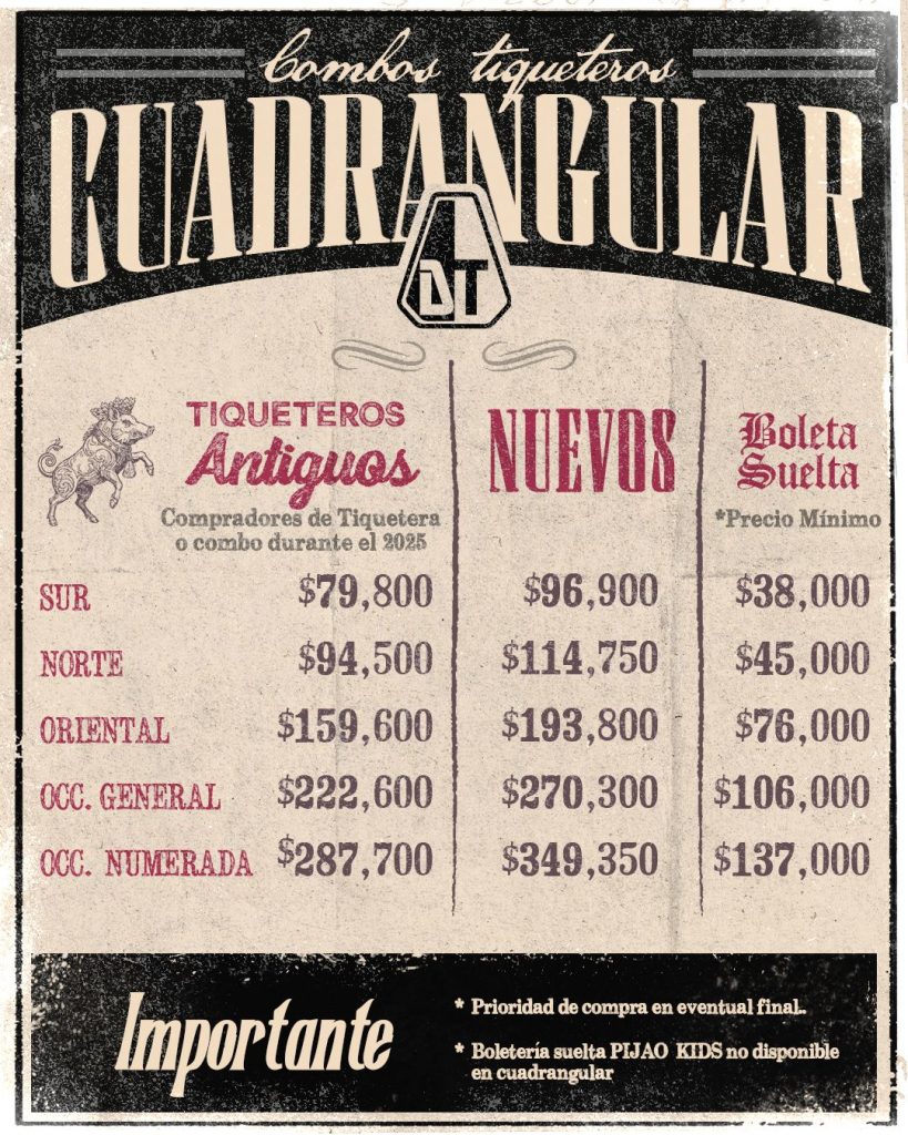 - Los compradores del combo tendrán prioridad de compra en una eventual final.
