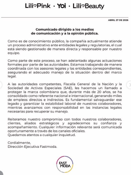 Si bien el caso comenzó en 2022, solo cuatro años después se logró proceder con la acción judicial y la intervención de la SAE. Actualmente la sociedad Fastmoda S.A.S., dueña de la marca Lili Pink, ya manifestó que actuará dentro del marco legal y solicitó que se garantice la estabilidad laboral de sus colaboradores.