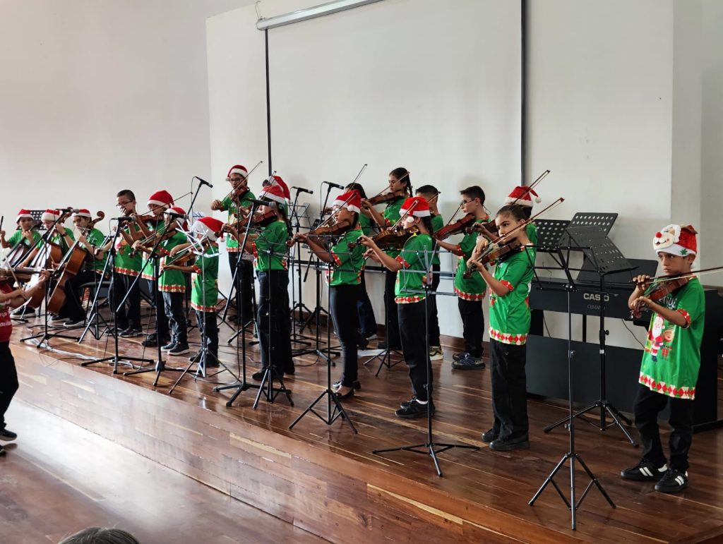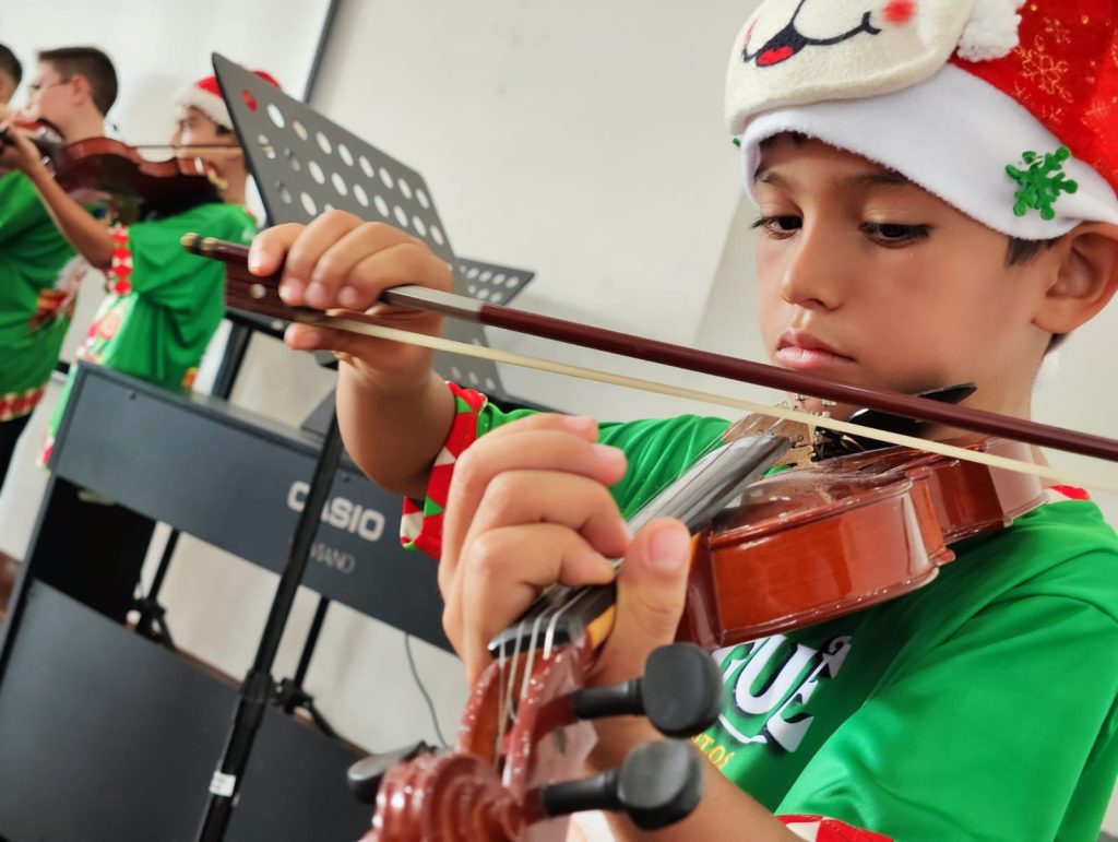 De manera individual y grupal, los estudiantes interpretaron diferentes piezas musicales a través de instrumentos como violín, clarinete, trompeta, flauta y violonchelo. La jornada cerró con el coro ‘100 voces’, que interpretó las tradicionales canciones navideñas.