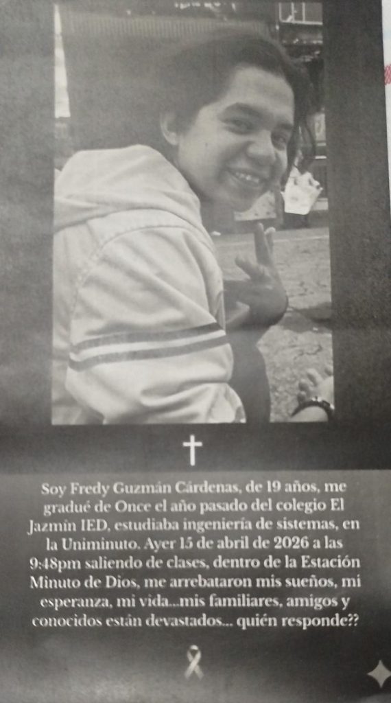 En el marco del plantón ocurrido en el barrio Minuto de Dios el día 21 de abril, la comunidad estudiantil, el Consejo Local de Juventudes de Engativá, vecinos del sector y allegados de Freddy Guzmán se expresaron de forma pacífica. Su objetivo fue exigir a la Alcaldía Mayor de Bogotá garantías de seguridad y contundencia frente al hecho donde el estudiante de Ingeniería de Sistemas perdió la vida.