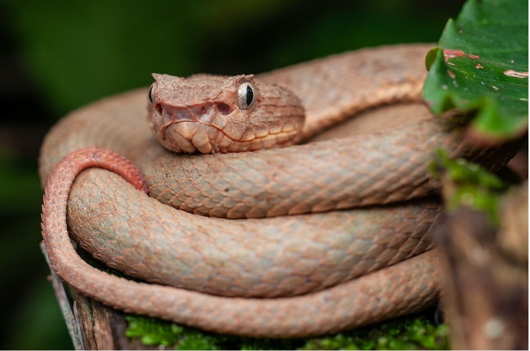 La Bothriechis schlegelii, conocida como víbora de pestañas, es una serpiente de América Latina fácilmente reconocible por las protuberancias sobre sus ojos que asemejan pestañas. Mide aproximadamente setenta y cinco centímetros y pertenece al 18 por ciento de serpientes venenosas de Colombia.