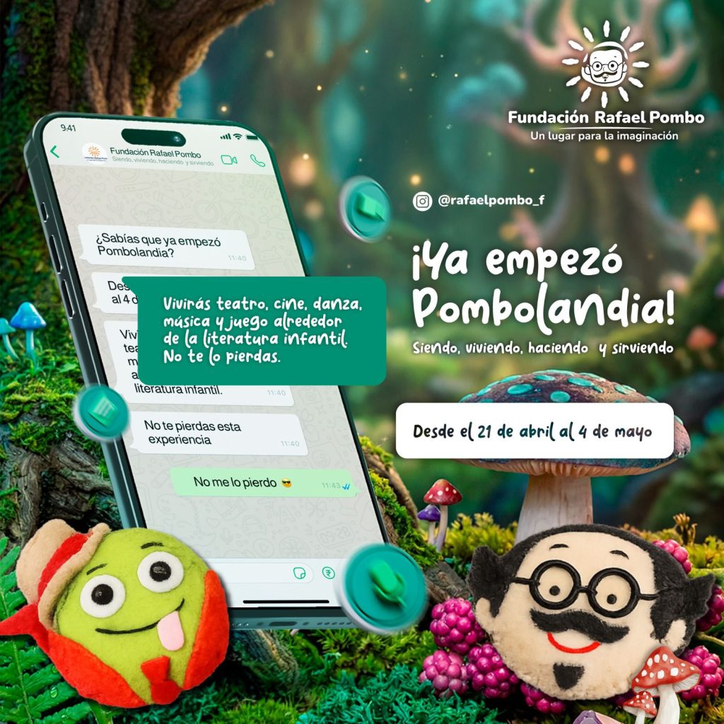 Bajo el lema ‘Siendo, Viviendo, Haciendo, Sirviendo’, la Fundación ha organizado su propia agenda con un calendario público disponible en su sitio web. El título ‘PomboLandia’ remite al universo de personajes y fábulas creado por Pombo —Simón el Bobito, Pastorcita, Rin Rin Renacuajo, Michín, la Pobre Viejecita, entre otros— y los cuatro verbos del lema plantean un itinerario formativo que trasciende la sola promoción de la lectura: identidad, experiencia, creatividad y servicio comunitario. La agenda se estructura semana a semana e incluye tanto las actividades desarrolladas dentro de Corferias como las articulaciones con FILBo Ciudad.