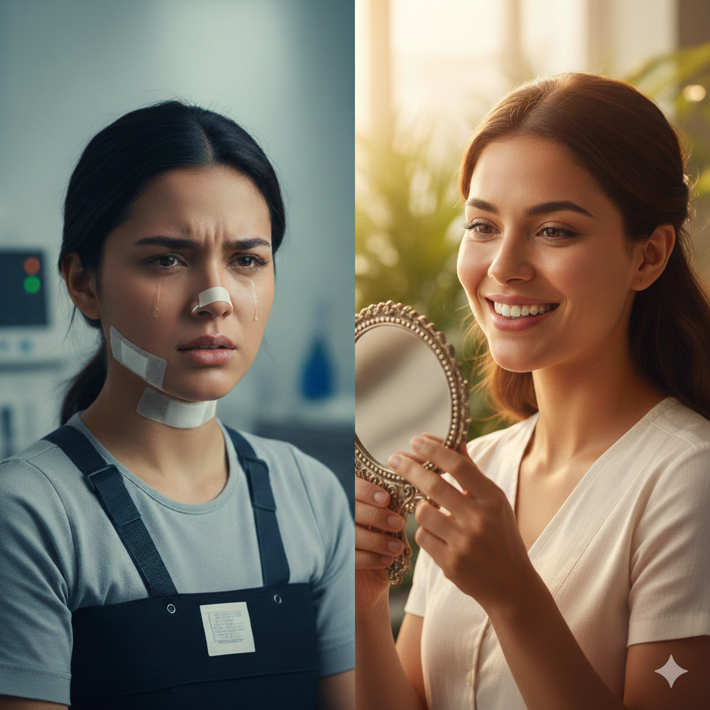 Aunque puede presentarse sensación de congestión o dificultad para respirar durante los primeros días, el uso de láminas paraseptales en lugar de tapones nasales mejora significativamente la experiencia del paciente y reduce las molestias.