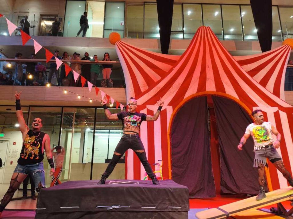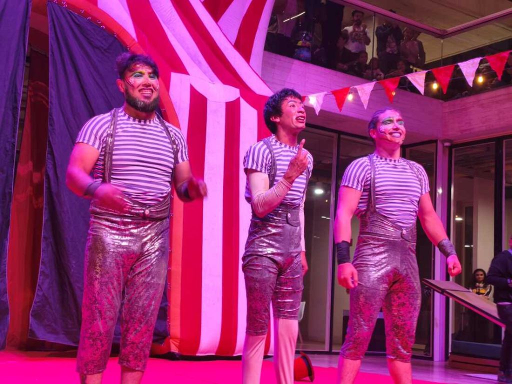 El espectáculo también destaca por su capacidad de incorporar la improvisación. En una escena, la ausencia inesperada de un acróbata se convierte en detonante creativo: los artistas resuelven en vivo con baile, humor y malabares entre ellos mismos, transformando el error en parte del show. Este recurso no solo aporta dinamismo, sino que refuerza la esencia del circo como un espacio flexible y creativo.