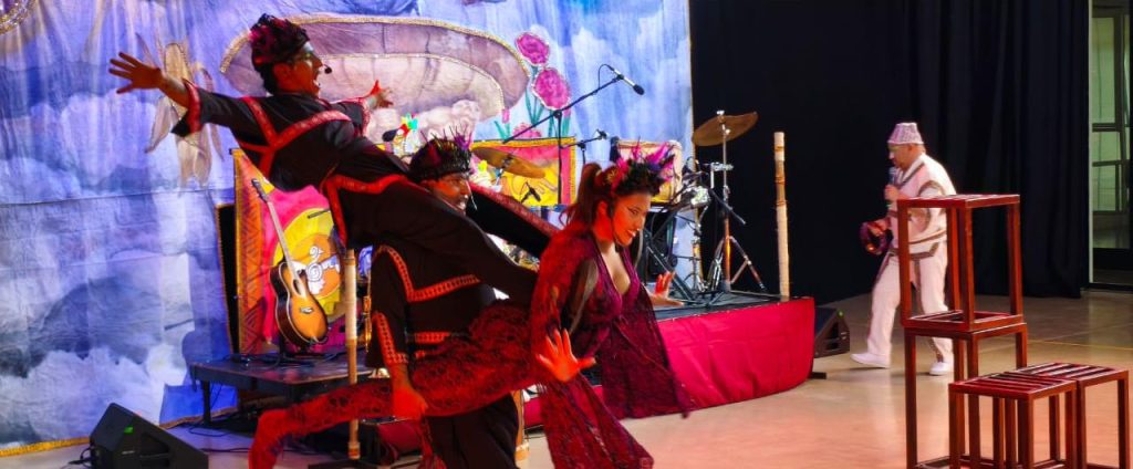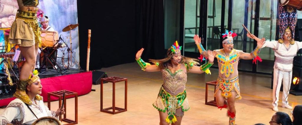 Desde el inicio, la puesta en escena se construye como un ritual. La música en vivo, con instrumentos como tambores, vientos y acompañamientos melódicos, no funciona como fondo, sino como motor narrativo. Cada ritmo marca una emoción: lo festivo, lo sagrado, lo tenso, lo violento. El canto también cumple un papel fundamental. La invocación al dios de la semilla se presenta como un acto colectivo, casi ceremonial, donde la repetición y la armonía transmiten reverencia. En contraste, la presencia de la serpiente se acompaña de una musicalidad insistente, casi hipnótica, donde la reiteración de su nombre refuerza su carácter dominante y perturbador.