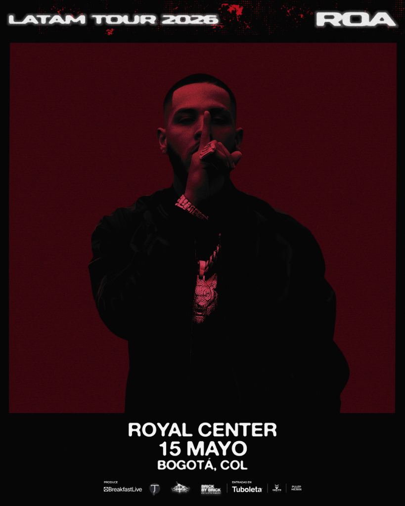 El próximo 15 de mayo, el Royal Center será el epicentro del trap en Bogotá con la llegada de “ROA LATAM TOUR”, uno de los artistas puertorriqueños que viene marcando una nueva etapa dentro del género urbano.Con un estilo que mezcla crudeza, melodía y una narrativa íntima que conecta especialmente con audiencias jóvenes, ROA se ha consolidado como una de las promesas más fuertes del trap latino actual. Su propuesta artística, cargada de estética, actitud y sensibilidad, ha logrado posicionarse rápidamente en el radar internacional.