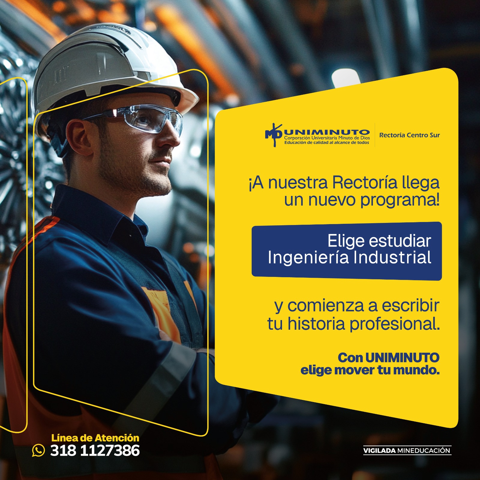 Estudia Ingeniería Industrial en UNIMINUTO Ibagué y conviértete en un profesional capaz de diseñar sistemas eficientes, innovar en producción y resolver desafíos operativos para empresas con impacto social.