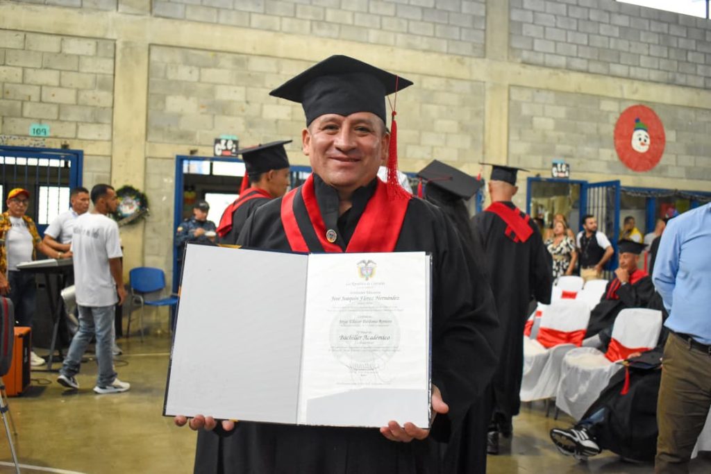 “Es un logro personal y para mi familia realizar todo el bachillerato, me gustaría continuar con una carrera universitaria, como seres humanos nos equivocamos pero se puede cambiar y ser mejor persona”, agregó Alexander Roldán, persona privada de la libertad.