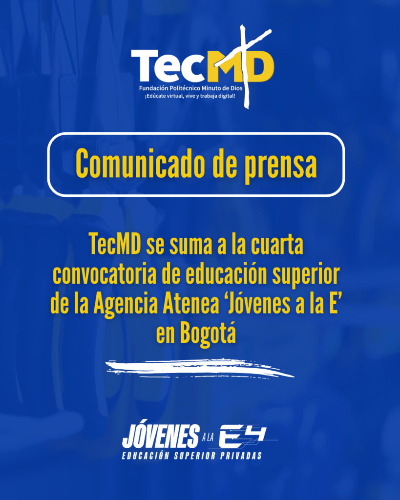 La Fundación Politécnico Minuto de Dios (TecMD) hace parte de las 40 universidades privadas de Bogotá a las cuales el talento joven de la capital de la República se puede inscribir para cursar estudios de educación superior a través de la cuarta convocatoria del programa ‘Jóvenes a la E’, que en esta oportunidad cuenta con más de 3.900 becas.